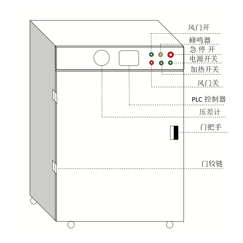 ④ Cirkulationssystem: Anvender en kraftig turbineblæser og videnskabeligt luftstrømsdesign til at opnå højhastigheds-varmluftcirkulation, hvilket sikrer fremragende temperaturensartethed inde i arbejdskammeret, forhindrer lokal overophedning og væsentligt forbedrer tørreeffektiviteten og forarbejdningskonsistensen;